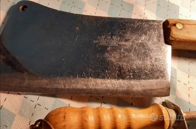 Mannaia acciaio inox, marca tre stelle cm. 39 peso kg. 1,2 e affilatore cm. 30