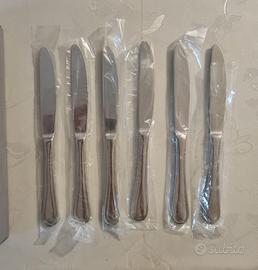 24 coltelli Lagostina in acciaio inossidabile inox 18/10 Tiffany. Come NUOVI, usati pochissimo. Pratico ed elegante manico. Possibilità anche di abbinarci 24 coltelli da frutta della stessa serie e stile cosi da completare il servizio.