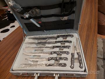 bellissima e completa valigetta brandani con 7 coltelli da cucina, 1 forchette arrosto, 1 mandarino, trinciapollo, forbici, affilacoltelli 1 set da 6 posti tavola coltello e forchetta