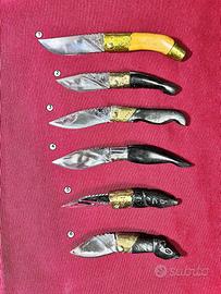 Manici in corno di bufalo, alcuni in legno di ulivo selezionato. Trattamento protettivo dei manici.