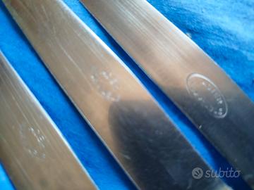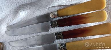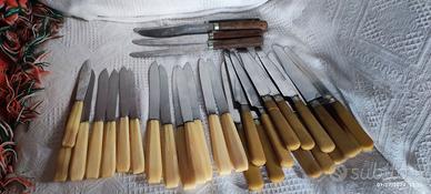 11 coltelli+3 con anello tra lama e manico speciale. Lama seghettata inox. 11 coltelli sono stessa collezione. Altri 3 simili.