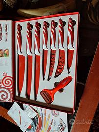vendo kit di 7 coltelli più 1 pelapatate rossi, trattati in ceramica.