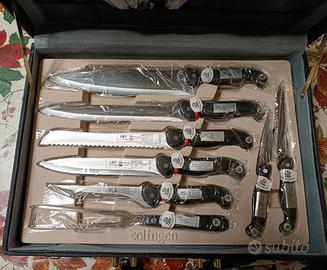 Set di coltelli Solingen nuovi con pellicola e valigia in pelle