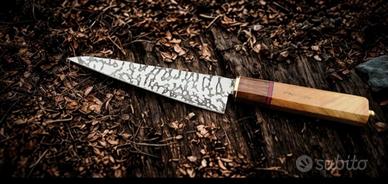 Gyuto coltello da chef con rivestimento in polvere nera, l'acciaio Living Caron viene utilizzato per la lama, offrendo un bordo estremamente affilato da rasoio, il legno stabilizzato russo importato e il legno di paka africano di 100 anni vengono utilizzati nel manico per renderlo più attraente.