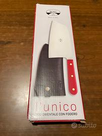 Design Orientale: Presenta un design che si ispira ai coltelli orientali, offrendo un'alternativa o un complemento ai coltelli da chef più tradizionali.