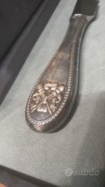 Coltello da pane,lama in acciaio inox e manico argento 925 GR50,stile inglese,con astuccio originale. Dimensione 29cm