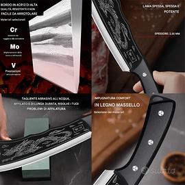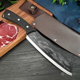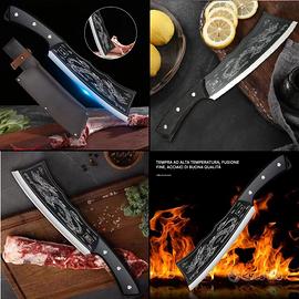 COLTELLO MULTIFUNZIONALE DA CHEF DA MACELLAIO STILE ASCIA - - - << - ROBUSTO & FODERATO - >> - - Coltello da cucina tritatutto per ossa coltello da macellaio coltello dal taglio affilato forgiato a mano coltello da cucina multiuso Specifiche: Categoria prodotto: coltello da cucina Materiale: acciaio inossidabile ad alto tenore di carbonio Angolo della punta dell'utensile: più di 60° Materiale lama: acciaio serie 5Cr Lunghezza del manico - 11cm Lunghezza della lama - 20cm Materiale della lama - acciaio al carbonio Tipo - Coltelli ----------- Panoramica Dragon Slayer fatto a mano Anticorrosione , buona resistenza, buona tenacità. Più piccolo è il bordo, più nitido è, mantenendo la sensazione di taglio. Cuchillo De Cocina Afilado da 8,2 pollici Acciaio forgiato monolitico durevole nel tempo. Design in argento lucido, la fermezza è 5 volte quella del coltello normale. Realizzato in acciaio inossidabile, forgiatura strato per strato, elevata durezza. Coltello da chef professionale Il manico ergonomico in legno riduce notevolmente la tensione del polso e crea una presa morbida e confortevole. Rettifica manuale ad acqua per tagli fini, taglio manuale dei bordi secondari per una maggiore nitidezza. Coltelli da cucina robusti Realizzati in legno robusto e antiscivolo. L'unità di azionamento rinforzata impedisce alla lama di scivolare durante l'uso. Materiale di alta qualità Acciaio forgiato monolitico durevole nel tempo. Design in argento lucido, la fermezza è 5 volte quella del coltello normale. Realizzato in acciaio inossidabile, forgiatura strato per strato, elevata durezza › Visualizza altri dettagli prodotto Queste lame lunghe e flessibili sono progettate per tagliare grandi pezzi di carne e lo fanno in modo elegante Suggerimenti: 1 - È normale che il coltello per affettare ricevuto presenti un po' di olio attaccato alla lama, il che serve a proteggere il coltello. 2 - Per una lunga durata, mantenere il lungo coltello da cucina asciutto e pulito.