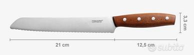 Coltello FISKARS NORR per tagliare il pane da 21 cm . La serie di coltelli NORR unisce il classico design scandinavo con materiali di altissima qualita’ , la lama e realizzata in acciaio inossidabile tedesco e il manico e in legno di kebony norvegese . Sono un must per i migliori chef professionisti . Lavabili in lavastoviglie quantita disponibile 2 pezzi