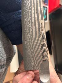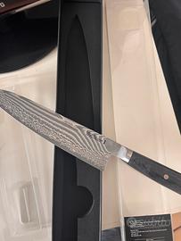 Vendo splendido coltello da chef (Gyutoh) Miyabi 5000FC-D, lama da 240mm. Il coltello è NUOVO, mai usato e mai affilato, completo di scatola originale e protezioni.