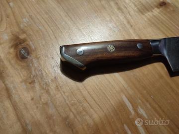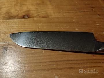 Vendo coltello Santoku blackened con manico giapponese, dal design elegante e moderno. La lama con finitura nera gli dà un aspetto ricercato e distintivo, mentre il manico in stile giapponese offre una presa comoda, leggera e ben bilanciata. Il profilo Santoku è molto versatile in cucina ed è ideale per tagliare verdure, carne, pesce e preparazioni quotidiane con precisione e controllo. Caratteristiche: stile Santoku finitura blackened manico giapponese leggero e ben bilanciato adatto a diversi utilizzi in cucina domestica Ottimo per chi cerca un coltello pratico, bello esteticamente e comodo da usare ogni giorno.