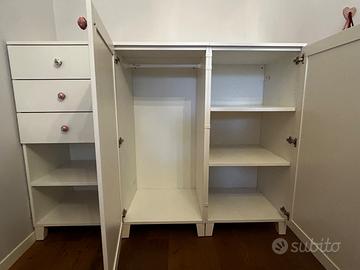 Combinazione di mobili Ikea bianco/con cornice smastad/platsa con pomelli in ceramica . Ogni modulo misura : prof 57 x larg 60 x h 133 ( di cui 10 cm piedino)