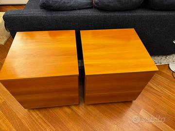 Due comodini in legno con 3 cassetti perfettamente tenuti, consegna a mano, prezxo trattabile