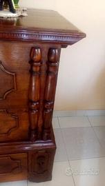 Una commode-cassettone artigianale del 1900 ,in perfetto stato. Tutto in vero legno.In basso c'è un cassetto capiente e all'interno della commode c'è un portagioielli .