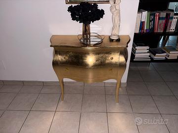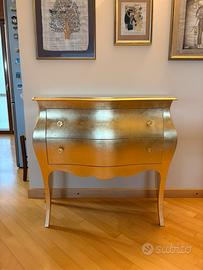 Como dorato come da foto Comò 2 cassetti bombato Classico in legno massello con parti in multistrato, finitura foglia oro.