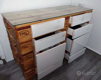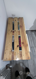 -N.2 comodini in pallet con vetro superiore e rotelle, misure