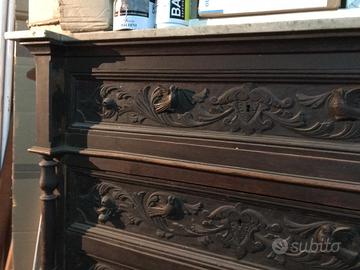 VENDO, COMO' 4 CASSETTI ANTICO, FINE 800 PRIMI 900 , FINEMENTE INTAGLIATO. UNA VERA OPERA D'ARTE. PIANO IN MARMO INTEGRO ORIGINALE. COMO' DA RESTAURARE.