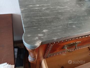 •Piano superiore : in marmo scuro ( nero del Belgio o simile, con bordo sagomato), un elemento classico dei mobili borghesi dell'epoca.