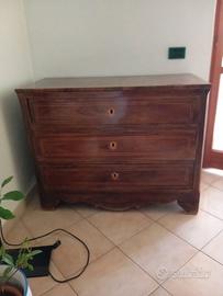 Ideale per una camera da letto, ma versatile nella sistemazione anche in zona giorno, presenta tre ampi e capienti tiretti ed è abbellito da semplici ed eleganti decori sulle serrature, sul ripiano e sui laterali.