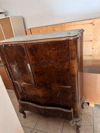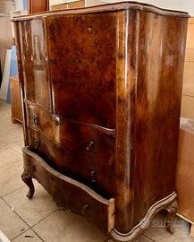 Vendo splendido comò antico/cassettone bombato in legno con finitura lucida effetto radica. ✔️ Dimensioni: •Larghezza: 110 cm •Altezza: 143 cm •Profondità: 50 cm ✔️ Caratteristiche: •Linee mosse stile classico •Cassetti capienti •Piedi sagomati •Ottime condizioni generali (come da foto) ✔️ Mobile ideale per arredamento classico, ingresso, camera o ambiente elegante. 📍 Ritiro zona Latina 💰 Prezzo trattabile Contattami per info o visio