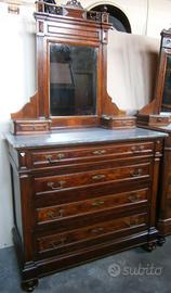 Comò antico con specchio 3 cassetti e mezzo piedi a cipolla e piano in marmo misure 105x52x185 vendo a 500 euro telefonare 3342056059