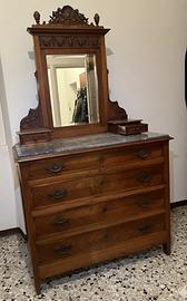 Vendesi comò d'epoca in noce con lavorazione dei cassetti a spina di pesce. Mobile solido e in buone condizioni conservative.