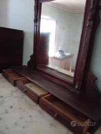 Como' antico con specchiera da cui escono 3 cassettini, ripiano in marmo bianco, cassetti del como' tutti funzionanti epoca fine 800 inizi 900 con un solo comodino il tutto in buono stato di conservazione. .