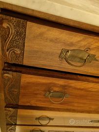 Struttura: Comò con quattro cassetti e specchiera intagliata abbinata
