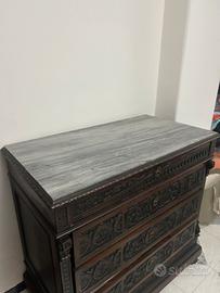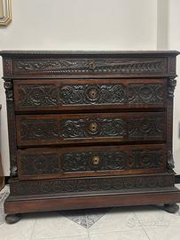 Vendo splendido comò antico in legno massello, stile Rinascimento, finemente intagliato a mano su tutta la facciata.