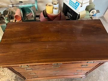 Comò in ottime condizioni in noce massiccio, l’interno cassetti rivestito di carta. Larghezza 112cm Altezza 102 cm Profondità 52 cm