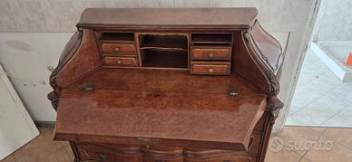 Stile unico e raffinato: Le forme mosse, gli intarsi e la radica di noce esaltano la bellezza e il valore di questo mobile. Il calatoio e i cassetti rendono questa ribalta perfetta per ambienti che uniscono estetica e praticità. Questa ribalta rappresenta la perfetta sintesi tra tradizione e funzionalità, un pezzo iconico che aggiungerà personalità e raffinatezza a qualsiasi ambiente. Ideale per studi, salotti o camere da letto, è un mobile autentico che racconta una storia e arricchisce lo spazio in cui viene inserito.