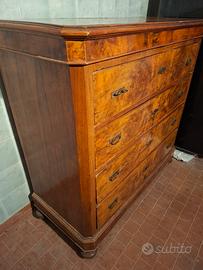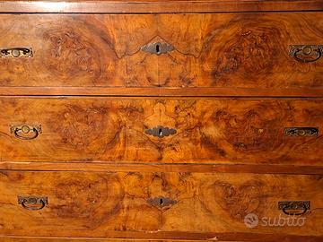 Vendo antico comò italiano in radica di noce, risalente ai primi del '900 ( 1901) e appartenuto alla mia famiglia. Vendo perché non ho spazio ed è un peccato non poterlo usare...