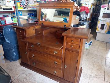 Comò moderno in arte povera in buono stato. Ha lo specchio che si chiude all'interno ed vari cassetti. Ha qualche leggero graffio ma nulla di grave. Misure 145x56 altezza 98. Robusto e pesante un bel pezzo. È integro. Per chi ha bisogno lo posso consegnare con uno scambio per il carburante. È a Petriolo MC. Per altre domande contattatemi.