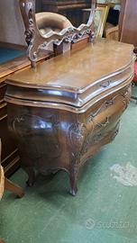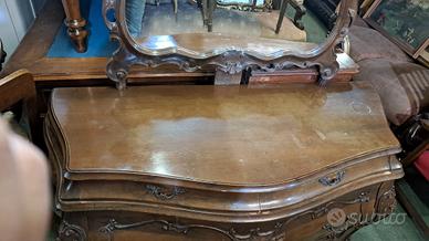 Como' Barocchetto in noce completo di specchiera. Il como' è in noce massello prodotto negli anni 70. Non presenta tarli. Misura 120x50 altezza piano 85 altezza totale con specchio 220....M&P Antichità siamo un negozio specializzato in antiquariato vintage e shabby vendita al dettaglio e all ingrosso scarichi settimanali oltre 500 articoli in negozio, abbiamo una vasta scelta di como comodini tolette armadi letti vetrine vetrinette credenze servanti angoliere librerie tavoli tavolinetti sedie poltrone poltroncine divani lampade lampadari tappeti scrivanie scrittoi secretere ribaltine consolle quadri cornici specchi cassapanche bauli oggettistica varia idee regalo e molto altro ci troviamo a Roma zona Castelverde via Massa San giuliano 26b POSSIBILITÀ DI CONSEGNA E SPEDIZIONE IN TUTTA ITALIA PER INFO LUCA