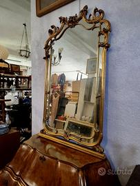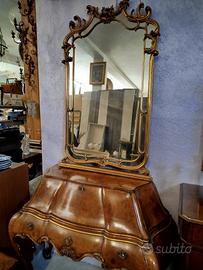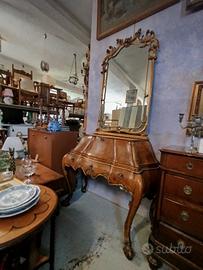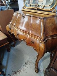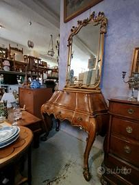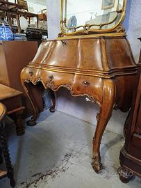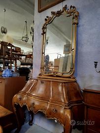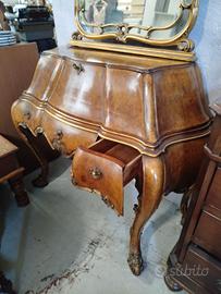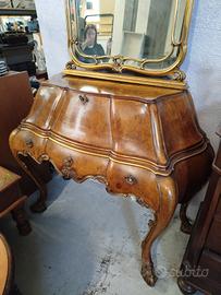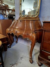 Comò stile Luigi XV in legno bombato colore miele con ribaltina e cassettini. Misure: (120 x 50 h. 110) Specchiera (140 x 80) Ottime condizioni!