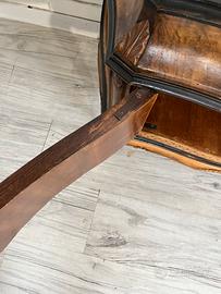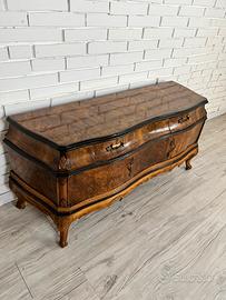 Elegante comò bombato in radica di noce, Italia, primo ’900. Linee sinuose, gambe cabriole e ferramenta in ottone.
