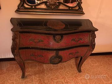 In vendita comò in stile boulle con specchio, usato, con alcuni graffi sul piano di appoggio.