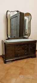 elegante comò camera da letto rivestito in radica verde completo di specchiera ottimo stato di conservazione
