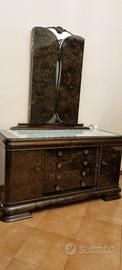 Elegante comò camera da letto rivestito in radica verde completo di specchiera ,ottimo stato di conservazione.