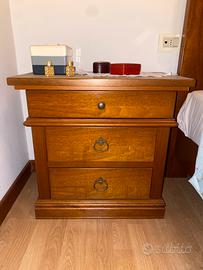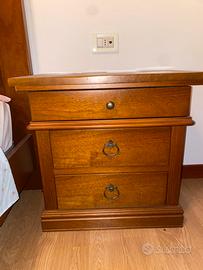 Comò camera da letto con cassetto portagioie + 2 comodini abbinati Vendo comò in legno stile classico completo di due comodini abbinati. Il comò è dotato di cassetto portagioie nascosto rivestito in velluto, molto pratico e funzionale. I mobili sono solidi e capienti, ideali per arredare una camera da letto. Presentano normali segni di usura dovuti al tempo, ma sono in buone condizioni generali. Prezzo: 280 € trattabili Ritiro a Cervignano del Friuli.