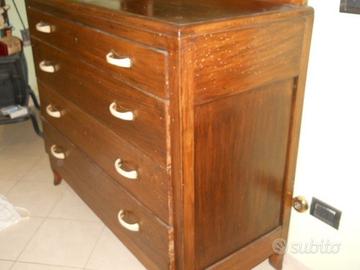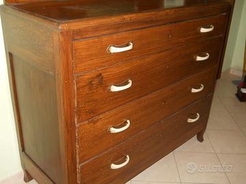 vendo comò/cassettiera con specchiera anni '50. In castagno e compensato. 4 cassetti. In buono stato, come da foto. Eventualmente da restaurare. Dimensioni senza specchiera: La cm118 - prof. cm. 50 - ha cm.101. Specchiera: ha cm.62
