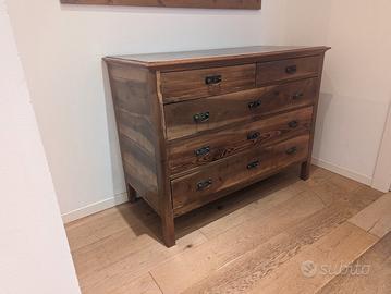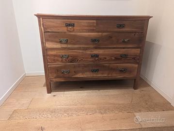 vendo como' cassettiera d'epoca e restaurata. carteggiata, tinteggiata e rifoderata internamente.misure : larghezza 56 cm - lunghezza 126 cm ed altezza 94 cm. ideale da accostate con arredamento moderno