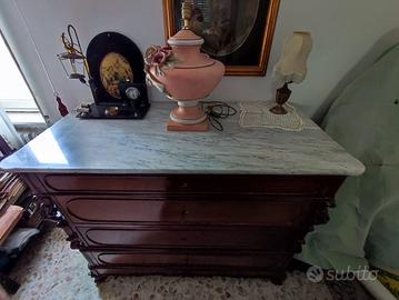 Comò antico dell 800 con 4 cassettoni e marmo originale.