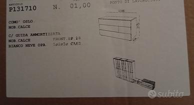 Comò moderno, nuovo, ancora imballato con cassetti di colore bianco neve opaco e grigio calce. Prezzo trattabile