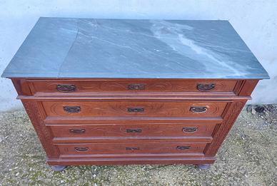 Antico d'epoca prima metà 1900 cassettone comò in legno lastronato con 4 cassetti.