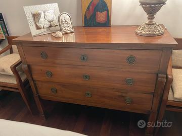 125x96 - Vendo comò / cassettone antico in legno. Il cassettone presenta uno stile lineare e funzionale, tipico dell'antiquariato, ideale per arredare camere da letto o soggiorni. Probabilmente risalente al XVIII secolo.