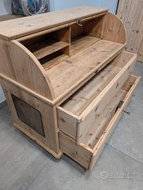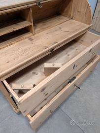 Stupendo e raro cassettone in abete datato 1800 d'arte povera. Comparto a rullo nella parte superiore, due segreti. Misure 119x58xh98 Prezzo e info in privato