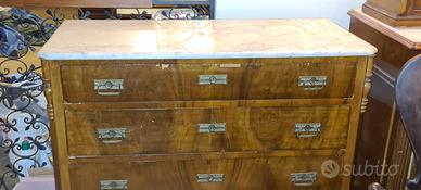 Comò cassettone in noce stile Impero con quattro grandi cassetti e piano in marmo. In buono stato ma da rivedere in piccole parti. Maggiori dettagli in privato se interessati. Ritiro a Bracciano a cura dell' acquirente.