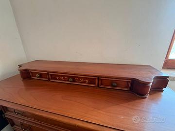 Alzatina superiore: Dotata di 3 cassetti aggiuntivi per piccoli oggetti, con pregiato intarsio floreale sul frontale centrale.