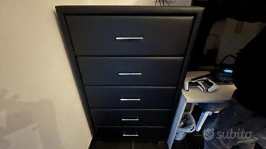 Cassettiera alta e due comodini in pelle nera