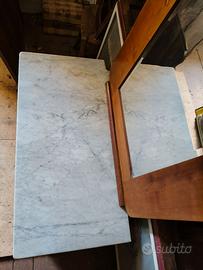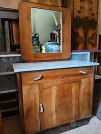 Legno di ciliegio degli anni 50 non tamburato o impiallacciato. Legno , specchi e maniglie ottimi il marmo della toilette ha una scheggiatura nella parte posteriore sx come da foto.
